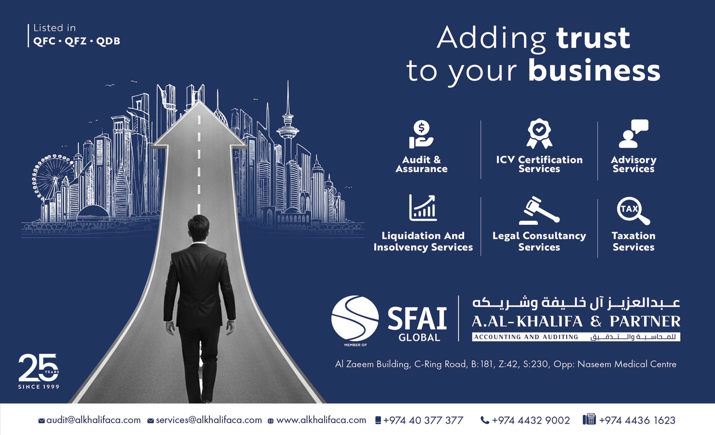 A. Al Khalifa & Partner provides professional Audit, Tax, and Financial Advisory services in Qatar. Partner with our Certified Auditors for expert guidance and regulatory compliance.