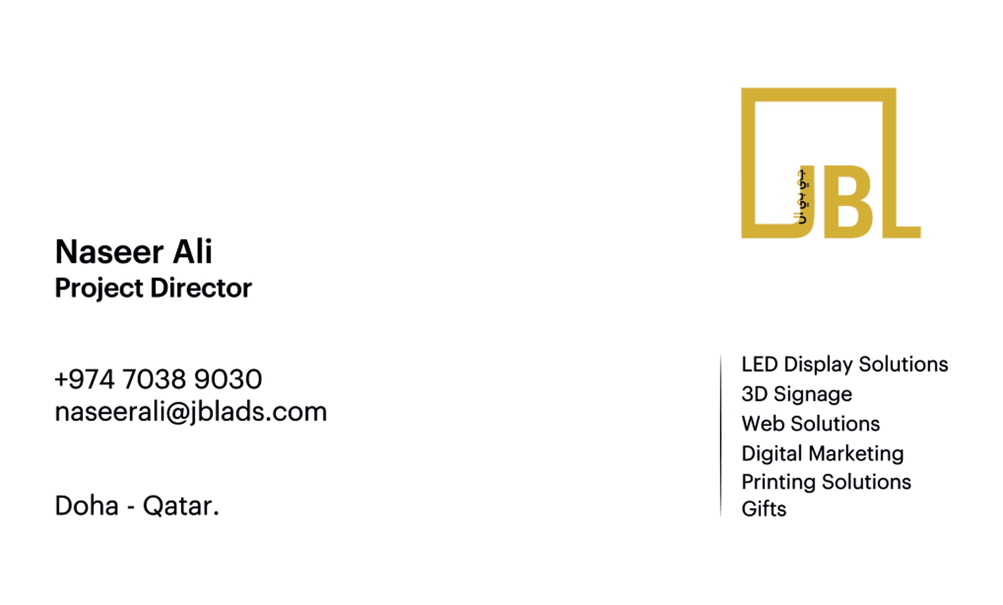 JBL Advertising Solutions delivers precision Branding, Signage, and Digital Marketing in Qatar. Specialists in creative development, 3D signs, offset printing, and comprehensive corporate solutions.