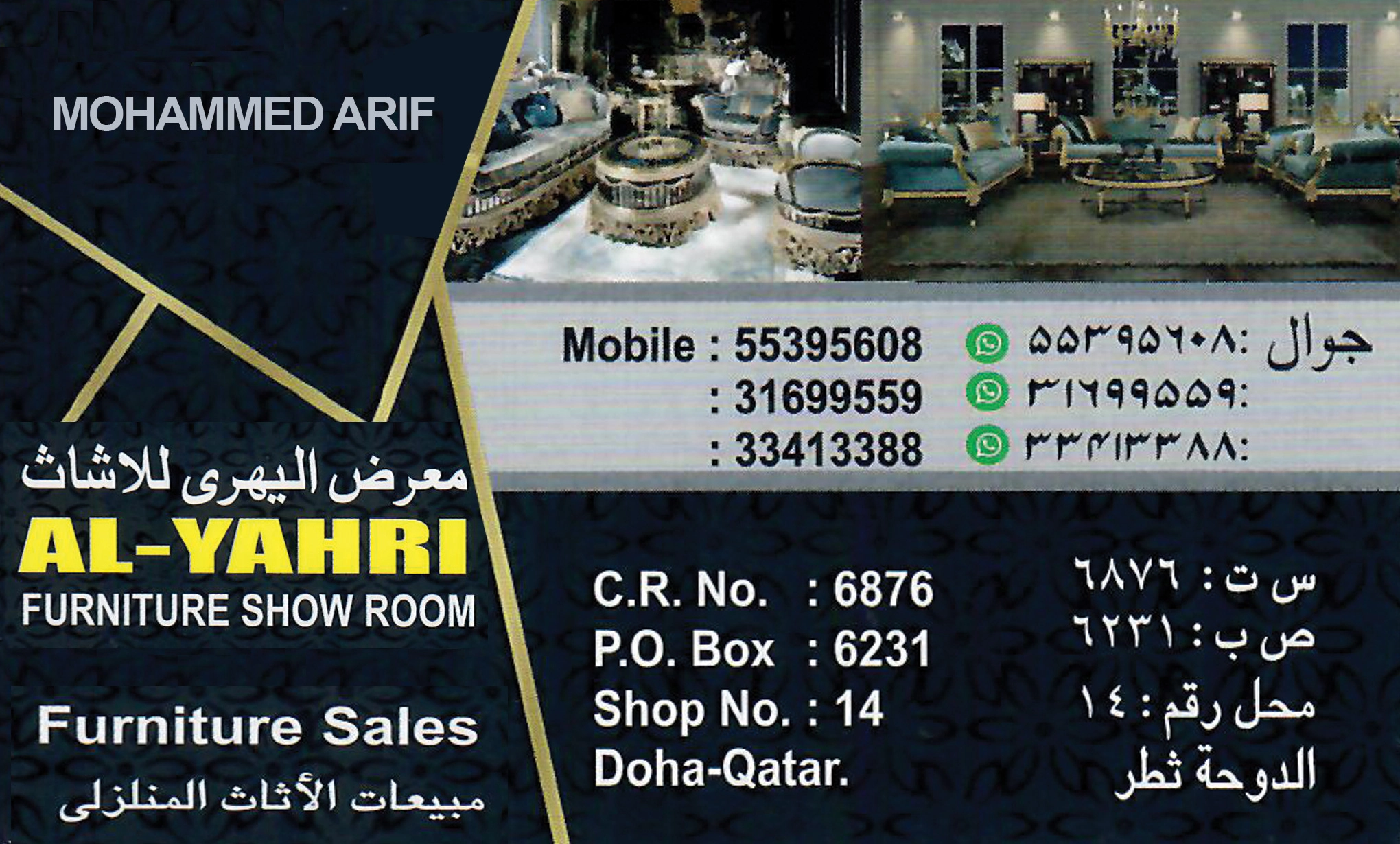 AL YAHRI FURNITURE SHOW ROOM offers high-quality furniture and stylish home decor solutions in Qatar. Find elegant and durable pieces for your home or office.