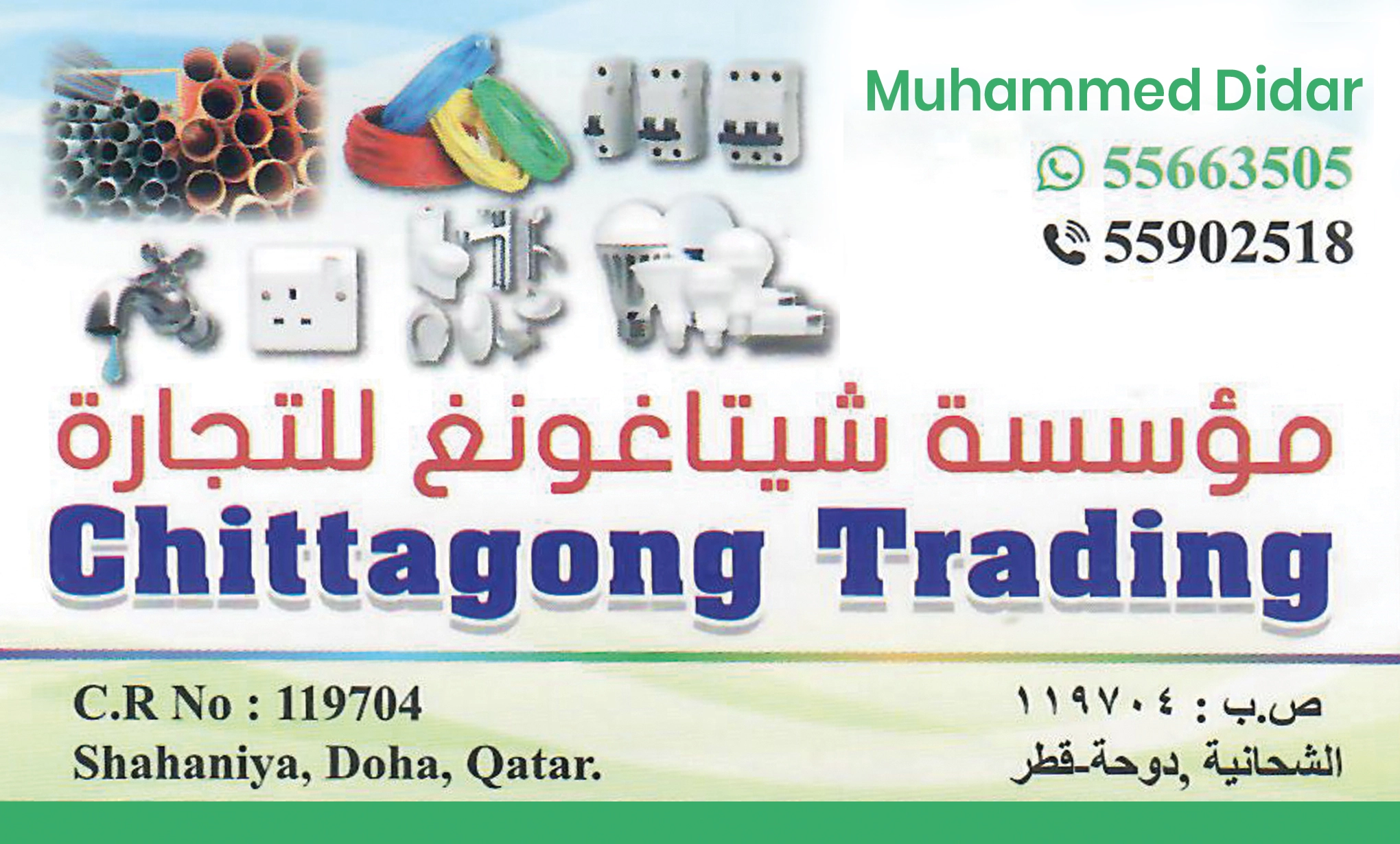 Chittagong Trading in Qatar provides plumbing & sanitary wares, hardware & paint, electricals & solar power, and building material solutions.